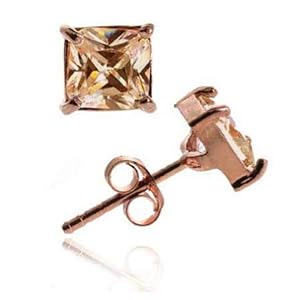 18K Rose Gold over Sterling Silver Champagne CZ 5mm Square Stud Earrings Description