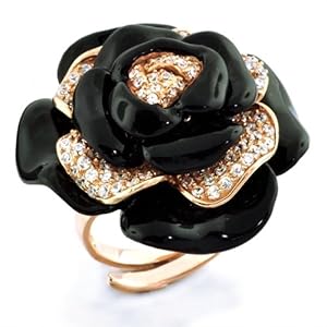 Bling Jewelry Rose Gold Vermeil Enamel Black Rose Cocktail Ring w CZs-7 Description